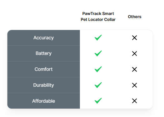 Others promise location but fall short on battery, comfort, or durability. PawTrack combines dependable tracking, long battery life, and a light, weather-resistant collar for real peace of mind.
